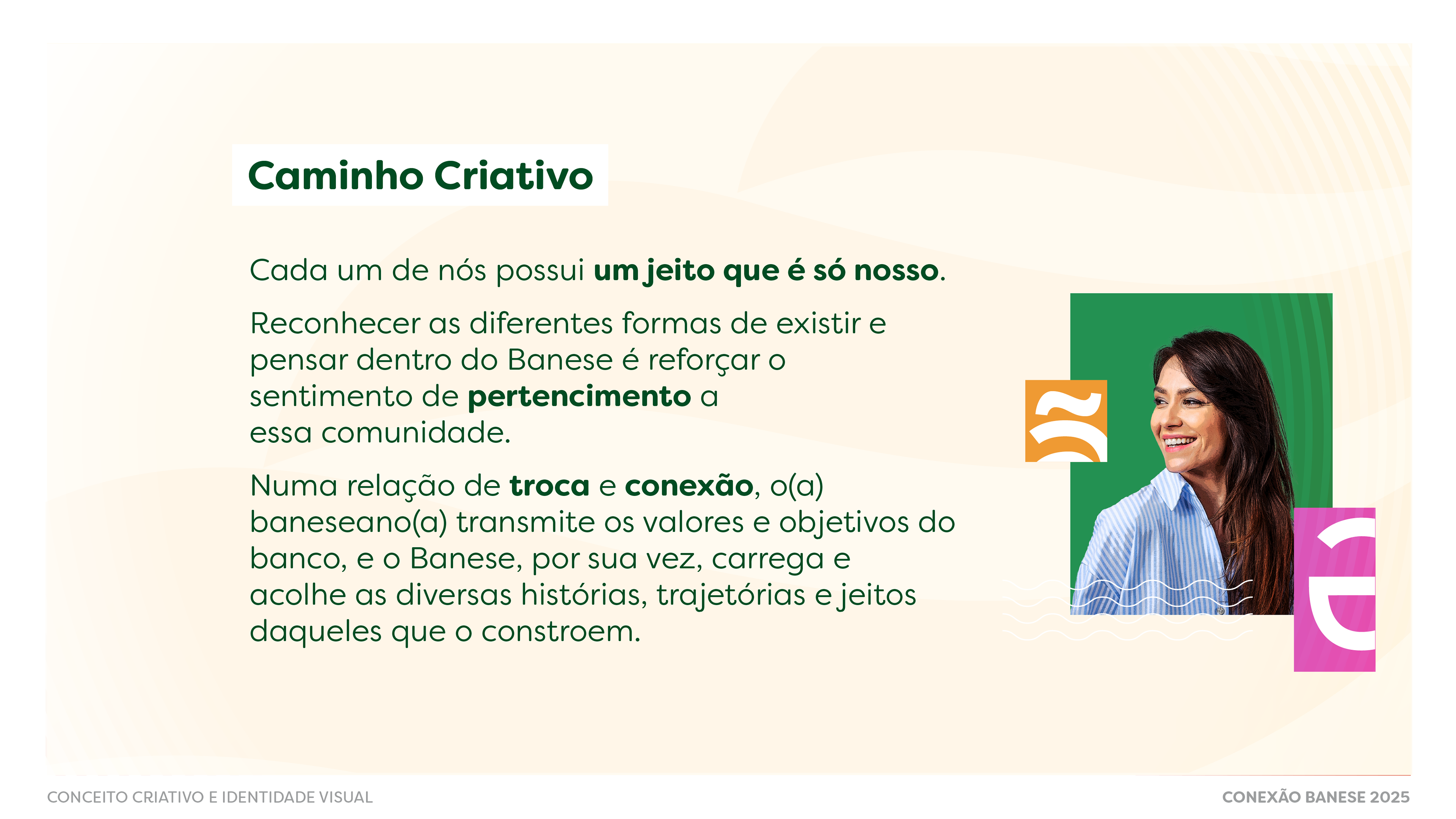 Anualmente, o Banco do Estado de Sergipe promove o "Conexão Banese", evento que reune o quadro de funcionários atuante todo o estado, proporcionando momentos de troca, alinhamento e descontração entre os "baneseanos", como são chamados os empregados da instituição. Em 2025, criamos esta campanha com o intuito de enfatizar a riqueza que existe na diversidade de pessoas e ideias.
