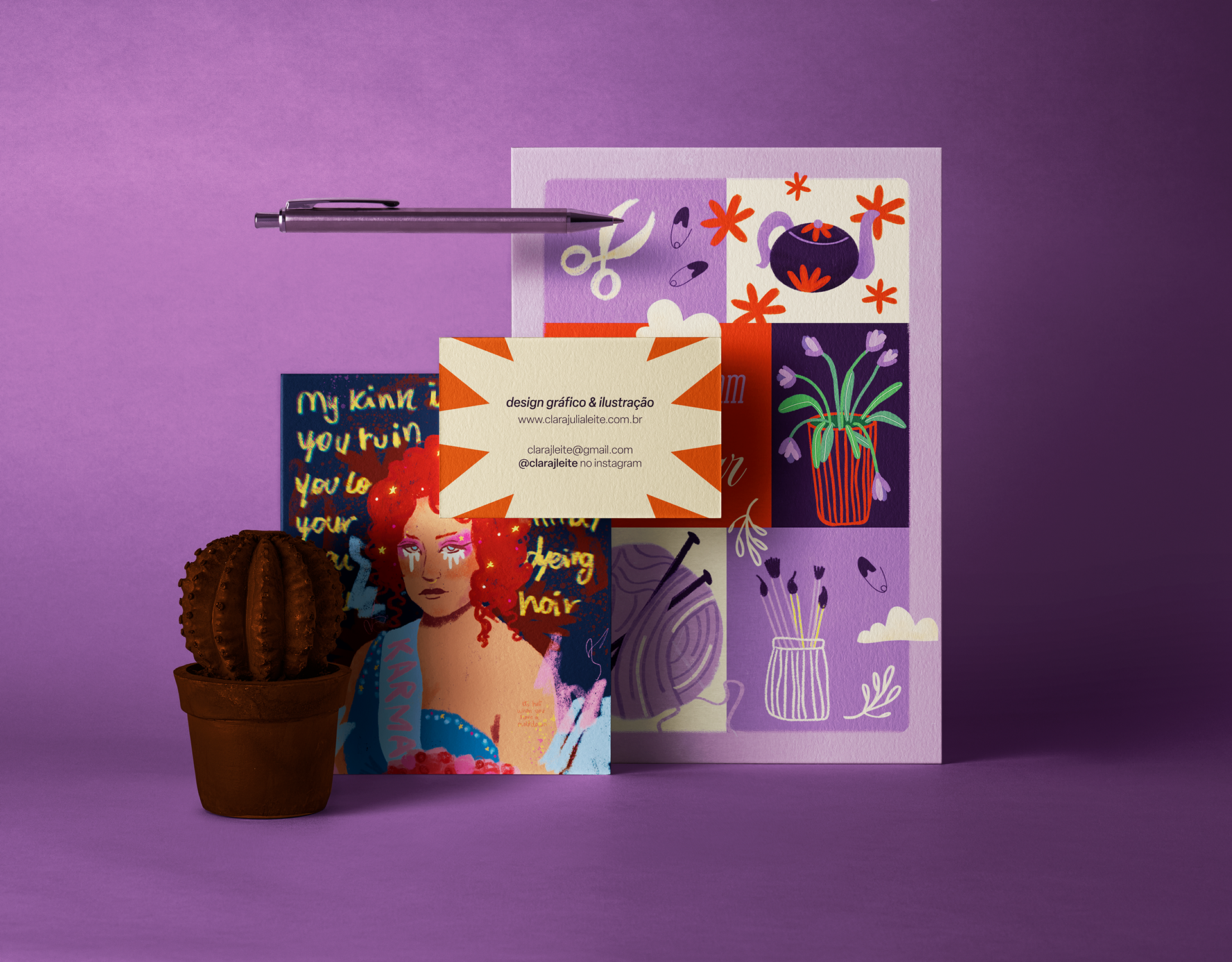Criar a própria marca visual é um desafio pra qualquer designer. A minha surgiu num processo nada linear, na busca por alinhar o meu estilo artístico de ilustradora com uma comunicação que me diferenciasse no online e que me permitisse desdobrar produtos e papelaria.