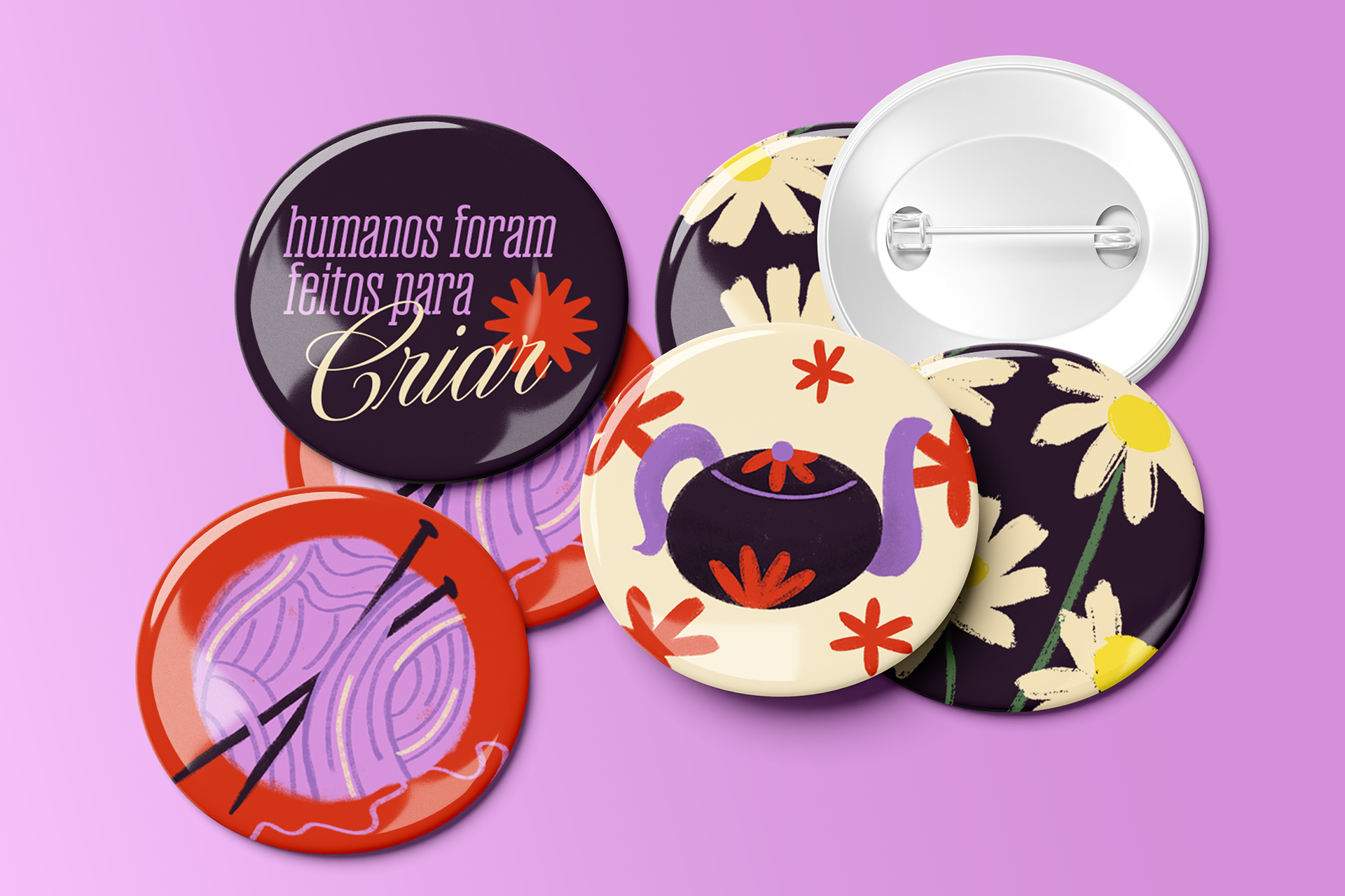 Além de designer, eu sou artesã e ilustradora que valoriza texturas e as atividades manuais como exercício de vida e criatividade e, assim como o meu estilo de ilustração, a minha identidade visual precisou ser dinâmica, diversa e artesanal, não fazendo sentido resumir essas ideias em um logotipo estático. Então, foram criadas assinaturas tipográficas flexíveis, com as tipografias Nautica & Magno Serif.